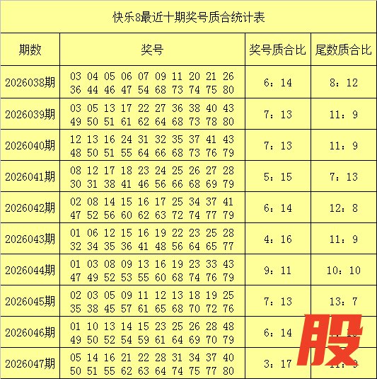 第十二位:上期开出合数奖号51,奖号尾数1为质数尾数,最近20期该位质尾奖号奖号出现8次,合尾奖号出现12次,合尾奖号表现较热,最近10期第十二位奖号尾数质合比为3:7,目前合数尾数奖号轮空了1期,本期奖号尾数参考合数,推荐号码38。